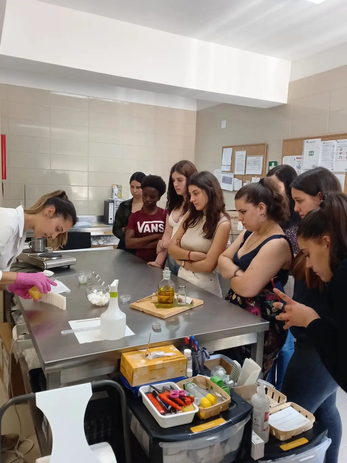 As alunas da Turma C 78 do Curso de Técnico de Esteticista, acompanhadas da Professora Cátia Monteiro, da Escola Profissional de Murça, estiveram hoje na D'NATUREZA a aprender a fazer bálsamos labiais de hortelã pimenta.
